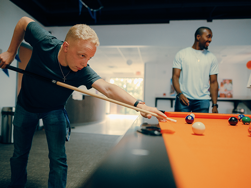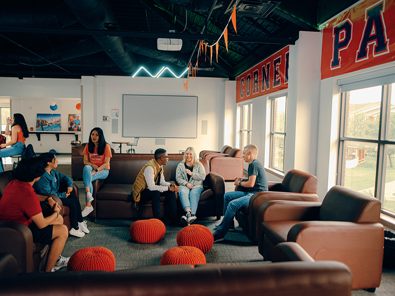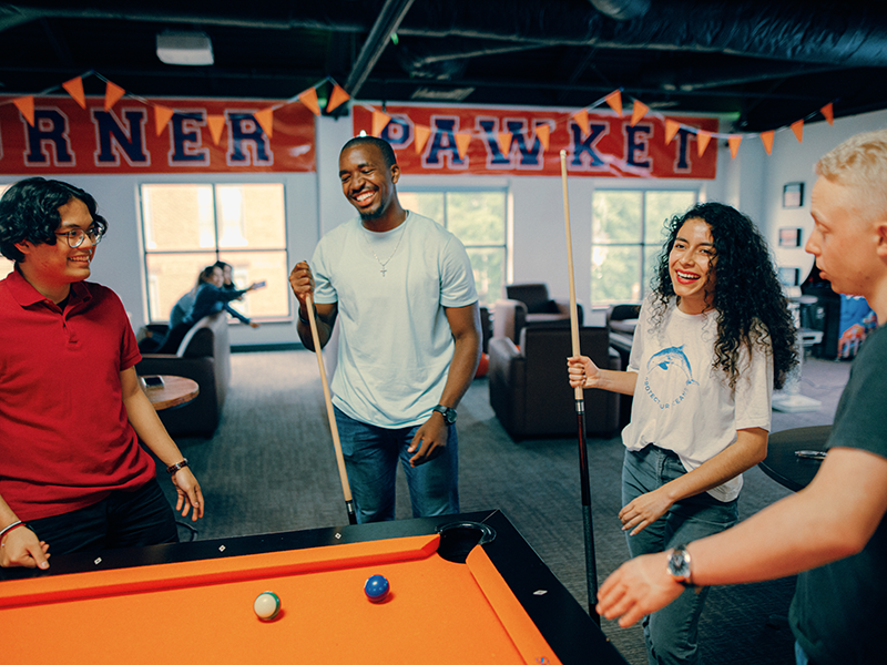 The Corner Pawket is HCU’s ultimate spot to game, watch, and relax! Located above the Baugh Center, it offers students a cozy lounge area to unwind with friends. Whether you’re in the mood for gaming, catching the latest game on TV, or just hanging out, this space has something for everyone.