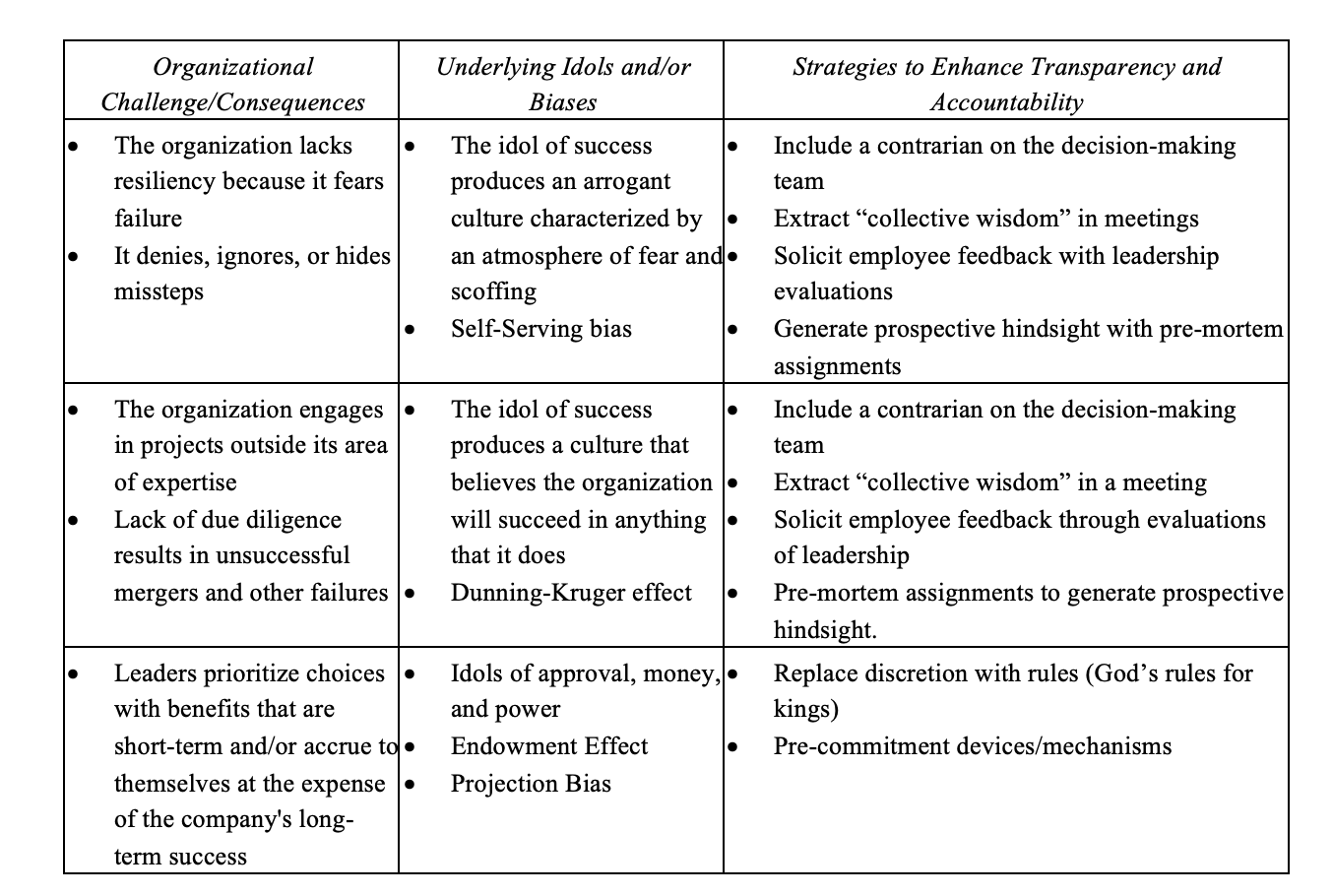 Posted on October 20, 2025 SHARE: Brand and Celebrity Worship: Confronting Biases Underlying Business Idols [By Cora Barnhart] Abstract A predisposition to idolatry influences decision-making in all facets of life, including business. This article examines how and why idolatry underlies contemporary business practices, whether through well-known pursuits of money, acceptance, and fame, or alternative forms of idolatry such as brand identity and celebrity CEOs. The article develops a biblical framework that connects humanity’s inherent need to worship something to God’s original purpose for humanity and how the Fall distorted that purpose. The article then analyzes the first two commandments and the Israelites’ challenges with idolatry, identifying two critical consequences for business. First, individuals and organizations often mirror the shortcomings of the idols they worship. Second, becoming enslaved to an idol comes at the price of losing freedom. The paper considers how organizations capitalize on the desire to belong and the culture around influencers to attract followers. It then summarizes how cognitive biases amongst leaders parallel Scriptural warnings against wealth accumulation, self-promotion, and other behaviors that stem from the pursuit of idolatry. It concludes by offering a model for business leadership that is based on humility. It emphasizes transparency, accountability, and subdued individual discretion as safeguards against biases that compromise long-term value and integrity. Introduction In 2014, the small start-up Theranos appeared to have struck gold when it developed a process that required only a few drops of blood to perform over 1,000 medical tests.1 Over the previous eleven years, Theranos founder Elizabeth Holmes had raised millions in seed capital and secured a $50 million deal with Walgreens to open wellness centers inside Walgreen stores featuring Theranos’ technology. Holmes also actively promoted her image, dressing in black turtlenecks, drinking green juice, and adopting other mannerisms that reinforced the media’s fawning perception of her as the next Steve Jobs.2 The company was valued at $9 billion, netting Holmes a personal worth of $4.5 billion. Four years later, the company collapsed after the much-hyped technology was exposed by the Wall Street Journal to be a sham. Holmes was convicted of four counts of defrauding investors and sentenced to eleven years in a federal prison in 2023.3 How could Walgreens and the seasoned investors in Theranos be fooled?4 Their previous professional successes likely contributed to the blatant lack of diligence in their due diligence process. Exclusive access to a seemingly lucrative project touted by luminaries and fellow billionaires increased the allure. Finally, there was the “hurricane of self perpetuating hype” that amplified Holmes’ celebrity CEO image.5 The preoccupation with wealth, acceptance, and fame underscores many instances of idolatry in the marketplace. The Theranos saga highlights some new enablers of idolatry in business – the worship of brand and the celebrity status of successful business leaders. This article hypothesizes that the creation of these and other idols in the marketplace stems from an inherent human need to worship someone or something. These ill-conceived pursuits inevitably mislead stakeholders and result in ruinous consequences. We begin by reviewing idolatry’s connection to God’s first two commandments. Examining idolatry’s destructive impact on the Israelites’ relationship with God reveals two concerns critical for business. First, idols’ dysfunctions are often mirrored by the individuals and organizations that worship them. Second, idolatry inevitably results in a loss of freedom. We draw parallels between modern day marketplace celebrities and Old Testament leaders where self centered pursuits of wealth and influence, and their preoccupation with worshipping the creation instead of the creator, often lead to cognitive biases in decision making which cost the organization in the long run. Idolatry in Business “You shall have no other gods before me. You shall not make for yourself an image in the form of anything in heaven above or on the earth beneath or in the waters below” (Exodus 20:3-4). Idolatry is not limited to worshipping ancient pagan gods or graven images. Martin Luther argued that obeying the first commandment requires recognizing that “upon which you set your heart and put your trust is properly your god.”6 One way to recognize the worship of a false god is that it has replaced the Creator God as “whatever your heart clings to or relies on for ultimate security.”7 In banning the creation of an image which is believed to possess divine power, the second commandment established a distinction between the Creator and His creation. Imagining an image is somehow connected to God would distract humans “from God’s true being.”8 Even for committed Christians, the temptation to treasure God’s creation over the Creator indicates that a range of areas of life are vulnerable to idolatry. Keller identified money and success as being among the “surface idols” many are tempted to rely upon to amass power, security, a sense of belonging, and other “underlying idols.”9 Thomas Aquinas argued that human decisions are subconsciously driven by the pursuit of money, power, pleasure, fame, and 3 things that are not inherently corrupt but could become idols once obtaining them becomes the ultimate goal.10 The appeal of these idols is apparent in media messages that encourage consumers to indulge themselves or that fawn over charismatic CEOs and influencers with a multitude of followers. Aquinas warned that choosing “substitutes for God” would not “satisfy the craving for happiness.”11 One reason that pursuing success, money, and other false idols leaves people empty is that they are positional goods.12 Amassing them leads