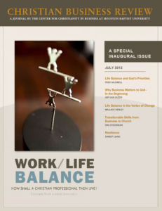 Issue 1: Work/Life Balance: How Shall a Christian Professional then Live? Please click individual articles below. Life Balance and God’s Priorities By Fred Caldwell Feature Article Work Life Balance – How Shall a Christian Professional then Live? By a special panel discussion Why Business Matters to God-In the Beginning By Jeff Van Duzer Life Balance in the Vortex of Change By Wallace Henley Transferrable Skills from Business to Church By Dru Stevenson Resilience By Ernest Liang Acknowledgments PUBLISHERS Robert B. Sloan Mohan Kuruvilla EDITORS Ernest Liang Leslie Haugen CONTRIBUTING EDITORS Richard Martinez Wallace Henley REVIEW BOARD (2013-2015) Eun Ahn, University of Hawaii Kevin Barksdale, University of Houston (Downtown) Kevin Brown, Asbury University Daniel Cheung, University of Dayton Jessie George, Houston Baptist University Leslie Haugen, Houston Baptist University (retired) Wallace Henley, Second Baptist Church, Houston Lau Chung Ming, Chinese University of Hong Kong Walton Padelford, Union University Nancy Pearcey, Houston Baptist University Yvonne Smith, University of La Verne Kenman Wong, Seattle Pacific University The Christian Business Review, Issue 1. Copyright 2012 Houston Baptist University. All rights reserved by original authors except as noted. Submissions to this journal are welcome. Email us at cbr@hbu.edu. To learn about the Center for Christianity in Business, please visit www.hbu.edu/ccb. Library of Congress Cataloging Data Christian business review (Print) ISSN 2334-2862 Christian business review (Online) (HC.edu/cbrj) ISSN 2334-2854 DISCLAIMER The views expressed in the articles or commentaries in this publication are solely the authors’ and do not necessarily reflect the views and opinions of the Christian Business Review, Houston Christian University (HCU), the HCU Archie W. Dunham College of Business, or the Center for Christianity in Business. CENTER FOR CHRISTIANITY IN BUSINESS MISSION The mission of the CCB is to equip and encourage leaders to carry their faith into organizations by developing and delivering a distinctively Christian worldview for business. INITIATIVES RESEARCH Consulting Engagements Scholarly Journals Research Seminars and Symposia Resident Scholars Program For Faith and Business Research COMMUNICATION Speaker Series Christian Business Leadership Video Series Christianity in Business Podcast and Live Webinar Series EDUCATION Annual Mentoring Conference Executive Education Programs