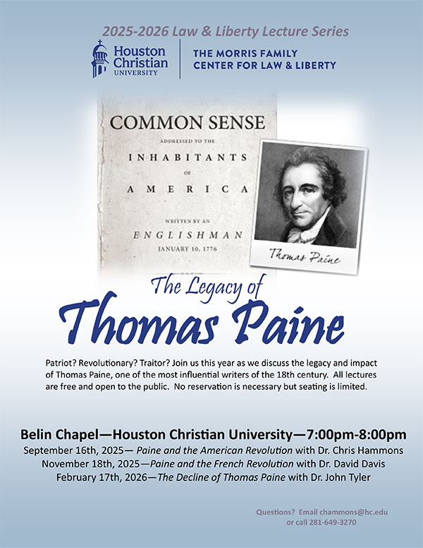 The Origins of American Constitutionalism The 2025-2026 lecture series will focus on the legacy of Thomas Paine. Patriot? Revolutionary? Traitor? Join us this year as we discuss the legacy and impact of Thomas Paine, one of the most influential writers of the 18th century.
