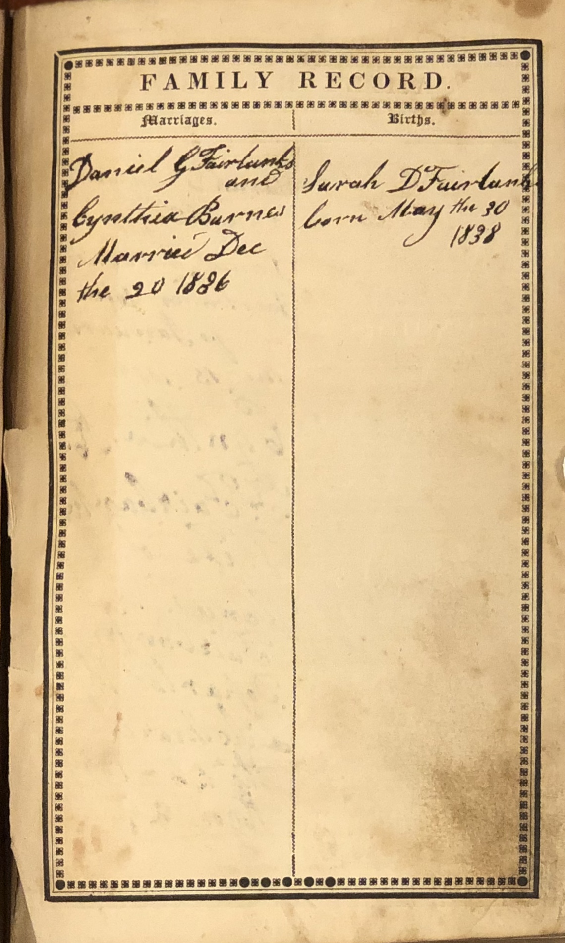 - Sarah D. Fairbanks. May 30, 1838.