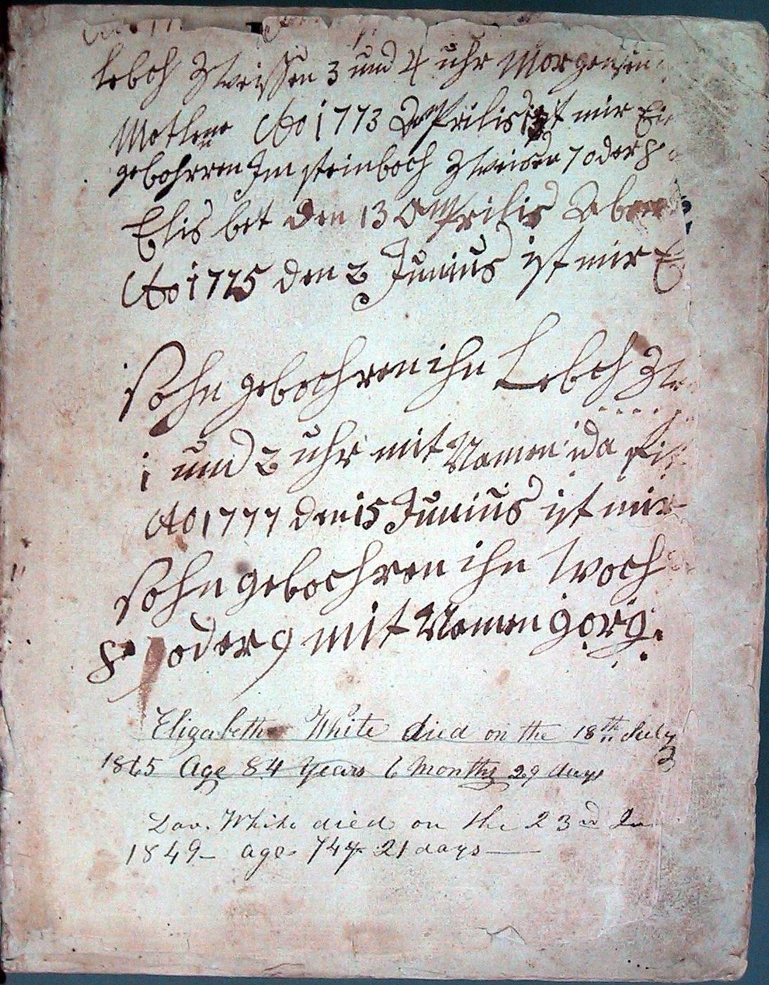 - Elisabeth White. April 13, 1773, between 7:00 and 8:00. Location: Lebach-[Steinbach].