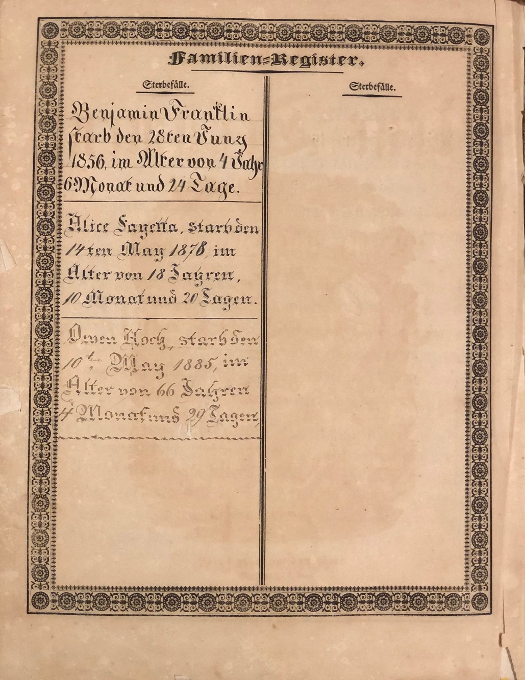 - Benjamin Franklin. June 28, 1856. Age 4 years, 6 months, and 24 days.