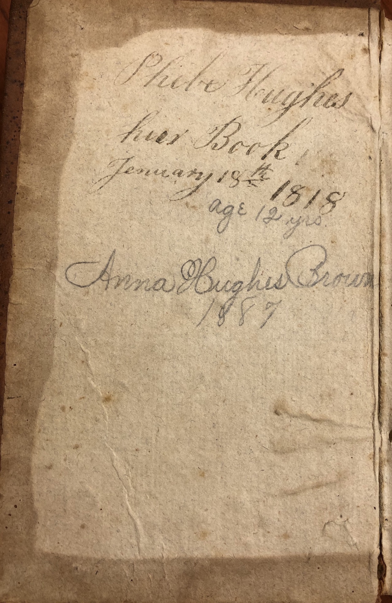 - (On inside cover) “Phebe Hughes, her book. January 18, 1818. Age 12 years.”