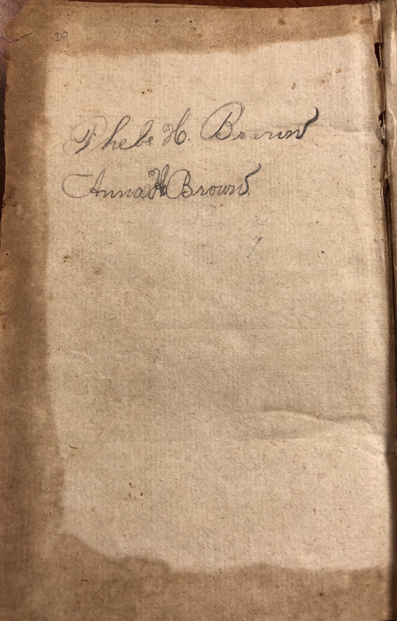- (On inside page) “Phebe H. Brown. Anna H. Brown.”