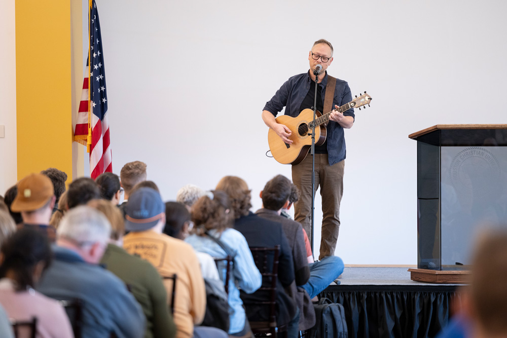 May. 6, 2025 SHARE: On Saturday, January 18, HCU’s Narrative Arts Department held its inaugural Narrative Arts Conference. While there had been precedent in the popular HCU Creative Writing Conference, this marked a new step for the realigned Narrative Arts program. HCU professors Dr. Matthew Boyleston and Joshua Sikora sought to take the annual writers’ conference and expand it into a full narrative arts conference, featuring presentations in all three of the department’s main content areas: digital media, creative writing and cinematic arts. The theme was “Creativity and Community”— fitting for a department that has realigned to emphasize shared community across creative disciplines. The conference began with a keynote delivered by Andrew Peterson, recording artist and author of the popular “Wingfeather” series of fantasy novels, to over 270 attendees in the new Morris Family Center for Law & Liberty. Peterson’s keynote, bookended by two moving song performances, was a poignant reflection on the theme of time, and what artmaking says about the past, present and future. Peterson walked attendees through the various ways his own art has interacted with these three aspects of time. Following this keynote, the conference comprised three breakout sessions. Each session offered attendees the chance to explore creative writing, cinematic arts or digital media led by various experts, including featured speakers best-selling author Bret Lott, three-time Emmy-award winning actor, Tony Hale and Soma Games founder, Chris Skaggs. Bret Lott explored detail and truth in writing and reminded attendees that, to speak truthfully, writers have to give more detail than they might think necessary. He likened writing to a cross-stitch: the image presented is clean and clear, but the back of the cloth shows a jumble of yarn. Lott charged aspiring writers to be courageous in their writing and to avoid complacency and cliche. In the first afternoon block, Hale was joined by HCU professor Bearden Coleman for a wide-ranging conversation about faith, acting and filmmaking. Hale noted that in an unpredictable industry, his career is full of uncertainty, and that maintaining success depends on the community around you. He talked about his craft, how his faith informs his work and about finding satisfaction in something beyond career success. Later in the afternoon, video game designer Chris Skaggs gave an inspiring call-to-arms for the Church to engage with the art of video games. Skaggs highlighted that we are at an inflection point for the industry, and the Church should not ignore the industry which itself is already bigger and more lucrative than Hollywood. According to Skaggs, video games are shaping culture in much the same way that Hollywood has. The Church has a prime opportunity to influence both the ethics of the industry and the stories it chooses to tell, and he commended HCU for being one of the Christian universities dedicated to training students to enter this industry. The final session was a roundtable discussion with Peterson, Hale and Skaggs, moderated by Bret Lott. This was a wide-ranging conversation in which the speakers reflected on their earliest memories of creating art, their mindsets during the creative process and how their faith and communities help sustain them when they are in creative dry spells. The inaugural HCU Narrative Arts Conference and its theme, “Creativity and Community,” can be encapsulated well by something Tony Hale said in his breakout session: “Invest in your community before you invest in your career.”