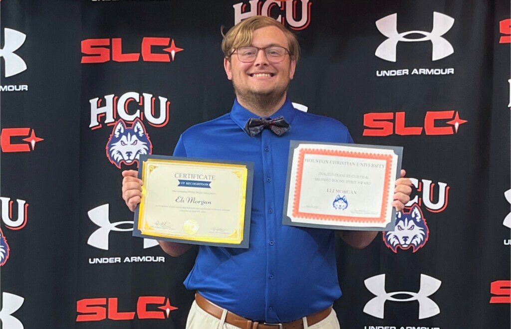 Those words became a lifeline Eli would return to again and again, especially in moments of self-doubt. But Professor Borges wasn’t just a cheerleader, he was a constant presence. “All four years, he has always been willing to help,” Eli says. That consistency mattered more than any single pep talk. Eli’s own peer mentors during his freshman year left an equally profound mark.They guided him through the rocky high school-to-college transition, and when he was asked to become a peer mentor himself during his junior year, the full circle clicked into place.”I thought to myself, that would be another great opportunity for me to influence freshmen and help them through that rough transition from high school to college,” he explains. Having walked that difficult path himself made him the perfect guide for others navigating the same terrain. For Eli, leadership didn’t come without its own set of battles, especially the ones fought internally. As someone who admittedly gets “very hot-headed” when playing sports, Eli faced a unique challenge: supervising intramural games while remaining completely impartial. “Being a ref versus being a player and separating those two was a very difficult thing,” he admits. The lines could blur fast, emotions running high on the court. But his deeper struggle was internal: “That feeling of, ‘I’m not worthy to teach or lead these people if I myself have made so many mistakes,'” Eli confesses. Imposter syndrome hits the hardest when we’re doing something that matters. For Eli, the antidote came through two sources: faith and community. “I definitely have to lean back on my faith and knowing that God created me how he wanted, and these mistakes I have made were not by accident,” he says. “They were designed and he is using them to build me into a better leader.” The lesson that emerged became his foundation: “Don’t let your mistakes define you, and do not let what others say about you affect how you think or how you act … You’re not going to be able to impact everyone, but it only takes one minute to impact someone’s life. You never know who is watching you as a leader. “What surprised Eli most about student leadership was how different it looked from what he’d imagined. He’d always thought of leadership as hierarchical, but HCU’s approach gives him room to take initiative, to make calls, to occasionally mess up, all while knowing he has a supportive team behind him. “Having people who are going to back you up when you make that call, even if others don’t agree with you, is huge to me,” he shares. This collaborative model of leadership has prepared Eli for his future in ways that a traditional boss-employee relationship never could. He’s learned that one size never fits all when it comes to leadership. Among all of his responsibilities, Eli has found his favorite task to be emceeing Husky Howls, HCU’s pep rally events. “Getting to be myself, just having fun, getting the crowd hyped for sporting events, it’s been my favorite,” he says. There is something so freeing about being able to channel all your energy into creating a positive space where people can come together and build community through shared excitement. It’s leadership without the weight of responsibility, joy in its purest form. This role fits perfectly with Eli’s philosophy, “You’ve got to go all out in whatever you do, every day, no matter what. Even if you think you are going to embarrass yourself, you’ve just got to have fun.” When asked how student leadership has changed his college experience, Eli doesn’t hesitate. “Being a student leader has definitely gotten me out of my comfort zone,” he says. But more than that, it provided continuity when other things began to fall apart. “Even when I felt like I didn’t have friends, my coworkers and the people that supervised me were constantly encouraging me.” Student leadership became the thread that held Eli’s college experience together, keeping him engaged when he might have otherwise felt withdrawn. “It kept me from isolating myself and wasting my college experience,” he says. Now as Eli prepares to graduate and step into the coaching world, he has clear advice for freshmen considering getting involved on campus. “I would definitely say to get involved on campus. It can be one of the most influential and most important parts of your college career,” he urges. “You only get one time in college, so take that chance and run with it.” The opportunities are endless, he promises, but only if you are willing to step forward and grab them. Eli Morgan came to Houston Christian University hoping for a great education in a field he is passionate about, but he is leaving with so much more: leadership skills forged through trial and error, a community that lifted him up when he needed it most, and mentors who saw his potential before he knew it and a clear sense of calling. “Being a student leader, for me personally, is a great privilege,” he reflects. It turns out that accidental application was exactly what Eli needed. And for the countless students he has impacted along the way, and the many more he is sure to inspire as a coach, we are all grateful he checked the wrong box.