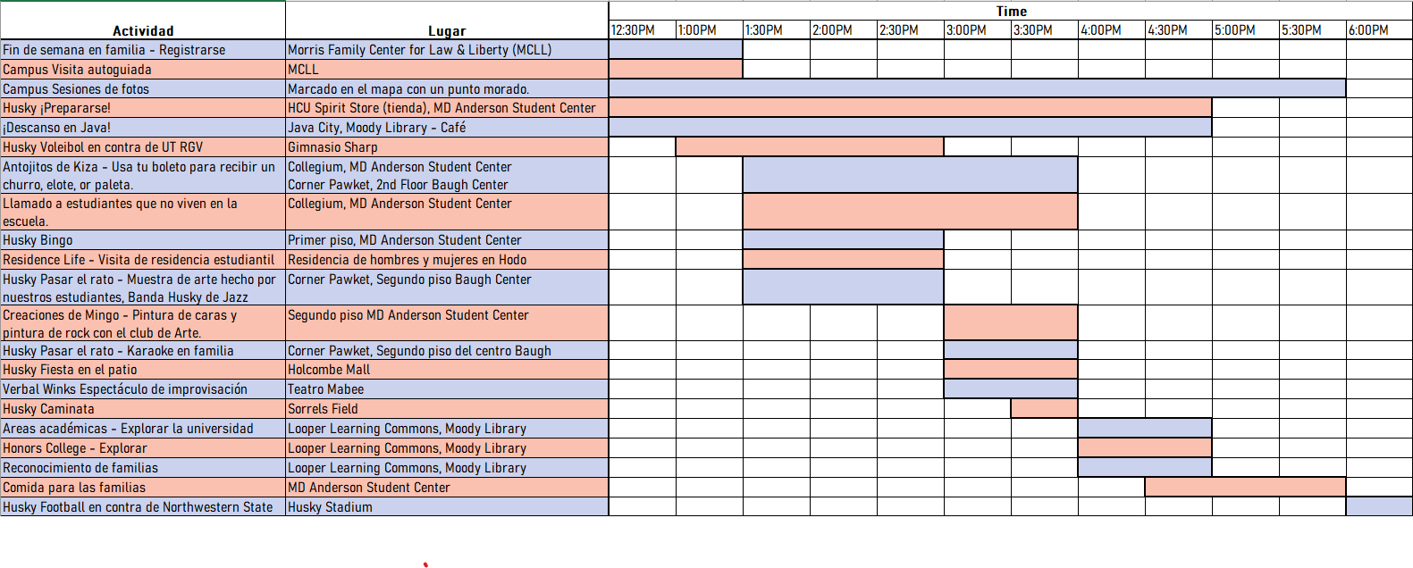 Family Weekend Itinerario